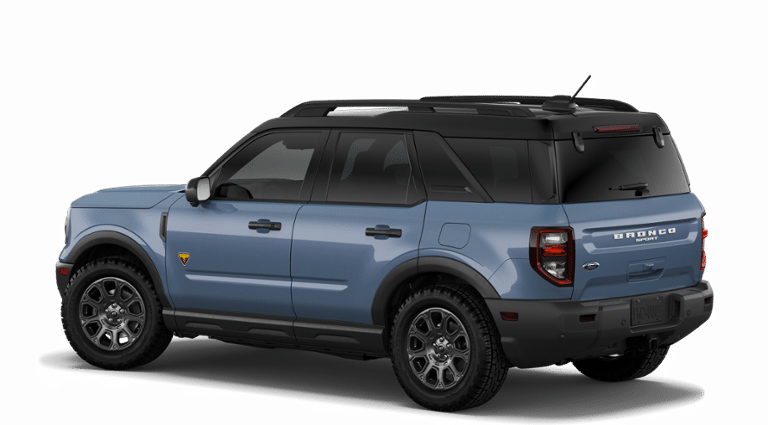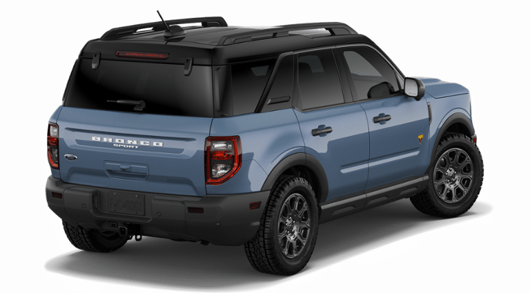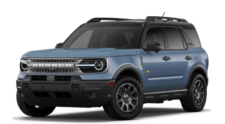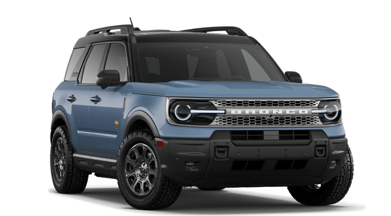 Factory MSRP: $45,245 Azure Gray Metallic 2026 Ford Bronco Sport Badlands 4WD 8-Speed Automatic EcoBoost 2.0L I4 GTDi DOHC Turbocharged VCT 4-Wheel Disc Brakes, 6 Speakers, ABS brakes, Air Conditioning, Alloy wheels, AM/FM radio: SiriusXM with 360L, AM/FM Stereo, Apple CarPlay/Android Auto, Auto High-beam Headlights, Auto-dimming Rear-View mirror, Automatic temperature control, Badlands Tech Package, Brake assist, Compass, Connected Navigation (1-Year Included), Delay-off headlights, Driver door bin, Driver vanity mirror, Dual front impact airbags, Dual front side impact airbags, Electronic Stability Control, Emergency communication system: SYNC 4 911 Assist, Equipment Group 400A Standard Package, Exterior Parking Camera Rear, Ford Connectivity Package (1-Year Included), Four wheel independent suspension, Front anti-roll bar, Front Bucket Seats, Front Center Armrest, Front fog lights, Front License Plate Bracket, Front reading lights, Fully automatic headlights, Heated door mirrors, Heated front seats, Heated steering wheel, Illuminated entry, Internet access capable: 5G Modem - Ford Connectivity Package, Knee airbag, Leather-Trimmed Heated Front Sport Contour Bucket Seats, Low tire pressure warning, Memory seat, Noise Reduction Module, Occupant sensing airbag, Outside temperature display, Overhead airbag, Overhead console, Panic alarm, Passenger door bin, Passenger vanity mirror, Power door mirrors, Power driver seat, Power Moonroof, Power passenger seat, Power steering, Power windows, Radio data system, Radio: HD w/B&O Sound System by Bang & Olufsen, Rear anti-roll bar, Rear reading lights, Rear seat center armrest, Rear window defroster, Rear window wiper, Remote keyless entry, Security system, SiriusXM with 360L, Speed control, Speed-sensing steering, Speed-Sensitive Wipers, Split folding rear seat, Steering wheel mounted audio controls, SYNC 4 with Enhanced Voice Recognition, Tachometer, Telescoping steering wheel, Tilt steering wheel, Traction control, Trip computer, Variably intermittent wipers, Wheels: 17 Matte Black-Painted Aluminum.