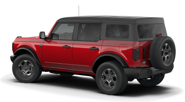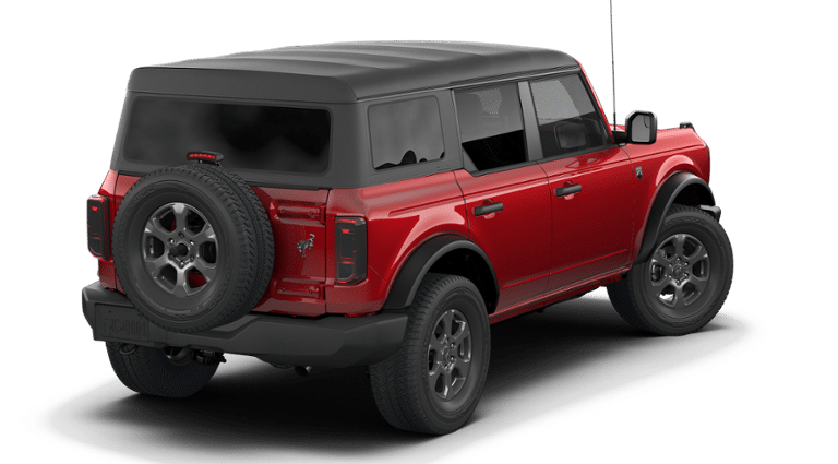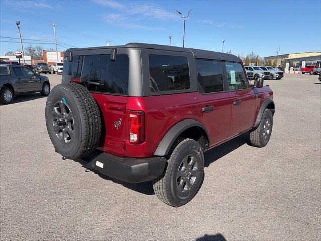 Factory MSRP: $48,615 Ruby Red Metallic 2026 Ford Bronco Big Bend 4WD 10-Speed Automatic 2.3L EcoBoost I-4 2-Door Intelligent Access with Lock/Unlock, 4-Wheel Disc Brakes, 4.46 Axle Ratio, 7 Speakers, ABS brakes, Air Conditioning, Alloy wheels, AM/FM radio: SiriusXM with 360L, AM/FM Stereo, Ambient Footwell Lighting, Auto High-Beam Headlamps, Auto High-beam Headlights, BLIS Blind Spot Information System, Brake assist, Carbonized Gray Molded-in-Color Hard Top, Cloth Bucket Seats, Compass, Connected Navigation, Delay-off headlights, Driver and Front Passenger Illuminated Sliding Visor Vanity Mirrors, Driver door bin, Driver vanity mirror, Dual front impact airbags, Dual front side impact airbags, Dual Smart Charging USB Ports, Dual-Zone Electronic Automatic Temperature Control, Electronic Stability Control, Emergency communication system: 911 Assist, Equipment Group 222A Mid Package, Exterior Parking Camera Rear, Ford Connectivity Package (1-Year Included), Front anti-roll bar, Front Bucket Seats, Front Center Armrest, Front License Plate Bracket, Front reading lights, Front Row Heated Seats, Front wheel independent suspension, Fully automatic headlights, Heated door mirrors, Illuminated entry, Integrated roll-over protection, Lane-Keeping System, Low tire pressure warning, Occupant sensing airbag, Outside temperature display, Overhead airbag, Overhead console, Panic alarm, Passenger door bin, Passenger vanity mirror, Power door mirrors, Power steering, Power windows, Pre-Collision Assist with Automatic Emergency Braking, Pro Power Onboard - 400W, Radio data system, Rear Parking Sensors, Rear-View Camera, Rear-Window Defroster and Washer, Remote keyless entry, Security system, SiriusXM with 360L, Speed control, Split folding rear seat, Steering wheel mounted audio controls, SYNC 4, Tachometer, Telescoping steering wheel, Tilt steering wheel, Traction control, Trip computer, Variably intermittent wipers, Wheels: 17 Carbonized Gray-Painted Aluminum.