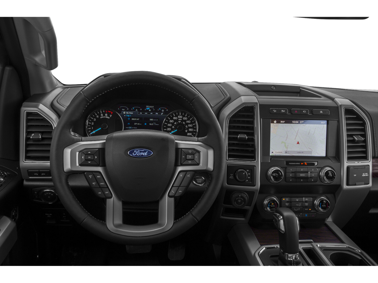 4WD, 110V/400W Outlet, 18 Machined-Aluminum Wheels, 2nd Row Heated Seats, 360 Camera w/Split-View Display, 4-Wheel Disc Brakes, 7 Speakers, ABS brakes, Active Park Assist, Adjustable pedals, Air Conditioning, Alloy wheels, AM/FM radio: SiriusXM, Auto High-beam Headlights, Auto-dimming door mirrors, Auto-dimming Rear-View mirror, Automatic temperature control, Brake assist, Bumpers: chrome, Chrome 2-Bar Grille w/4 Minor Bars, Chrome Angular Step Bars, Chrome Door & Tailgate Handles w/Body-Color Bezel, Chrome Skull Caps on Exterior Mirrors, Class IV Trailer Hitch Receiver, Compass, Delay-off headlights, Driver door bin, Driver vanity mirror, Dual front impact airbags, Dual front side impact airbags, Electronic Stability Control, Emergency communication system: SYNC 3 911 Assist, Engine Oil Cooler, Equipment Group 502A Luxury, Extended Range 36 Gallon Fuel Tank, Exterior Parking Camera Rear, Front anti-roll bar, Front Center Armrest w/Storage, Front dual zone A/C, Front fog lights, Front License Plate Bracket, Front reading lights, Front wheel independent suspension, Fully automatic headlights, FX4 Off-Road Package, GVWR: 7,050 lbs Payload Package, Heated door mirrors, Heated front seats, Heated Steering Wheel, Illuminated entry, Integrated Trailer Brake Controller, Lariat Bed Utility Package, Lariat Chrome Appearance Package, Leather-Trimmed 40/20/40 Front Seat, Leather-Trimmed Bucket Seats, LED Sideview Mirror Spotlights, Low tire pressure warning, Memory seat, Occupant sensing airbag, Outside temperature display, Overhead airbag, Overhead console, Panic alarm, Passenger door bin, Passenger vanity mirror, Pedal memory, Power door mirrors, Power driver seat, Power Glass Sideview Mirr w/Body-Color Skull Caps, Power passenger seat, Power steering, Power Tilt/Telescoping Steering Column w/Memory, Power windows, Pro Trailer Backup Assist, Quad Beam LED Headlamps & LED Taillamps/Fog Lamps, Radio data system, Radio: AM/FM Stereo w/6 Speakers, Radio: B&O Sound System by Bang & Olufsen, Rain-Sensing Wipers, Rear reading lights, Rear seat center armrest, Rear step bumper, Rear window defroster, Remote keyless entry, Remote Start System w/Remote Tailgate Release, Reverse Sensing System, Security system, Single-Tip Chrome Exhaust, SiriusXM Radio, Speed control, Speed-sensing steering, Split folding rear seat, Steering wheel mounted audio controls, SYNC 3, Tachometer, Tailgate Step w/Tailgate Lift Assist, Technology Package, Telescoping steering wheel, Tilt steering wheel, Tough Bed Spray-In Bedliner, Traction control, Trailer Tow Package, Tray Style Floor Liner, Trip computer, Turn signal indicator mirrors, Twin Panel Moonroof, Universal Garage Door Opener, Upgraded Front Stabilizer Bar, Variably intermittent wipers, Ventilated front seats, Voice-Activated Touchscreen Navigation, Voltmeter, Wheel Well Liner, Wheels: 18 Chrome-Like PVD, Wheels: 20 Chrome-Like PVD, Windshield Wiper De-Icer, 4WD.