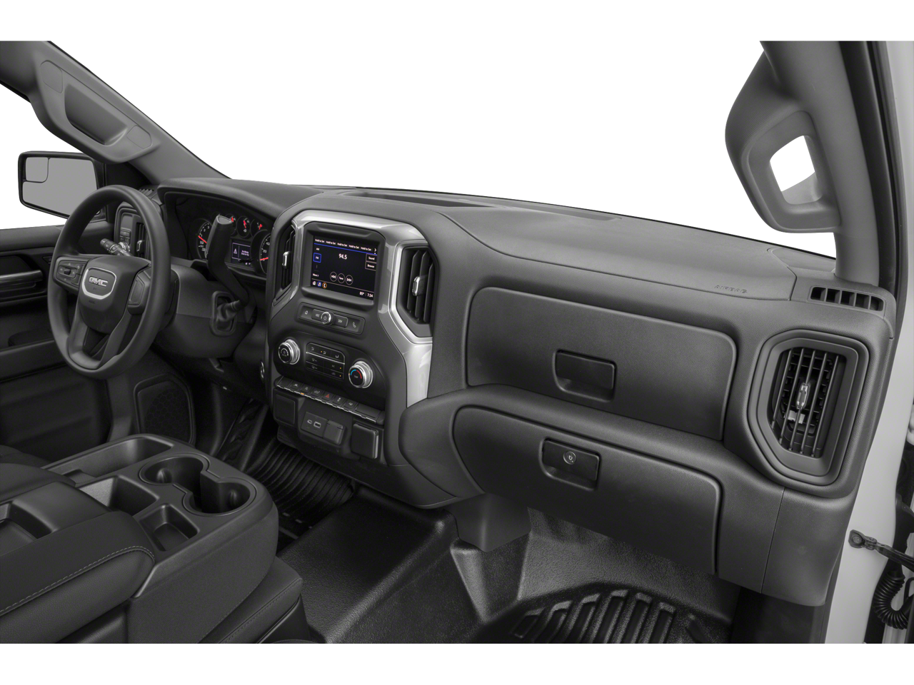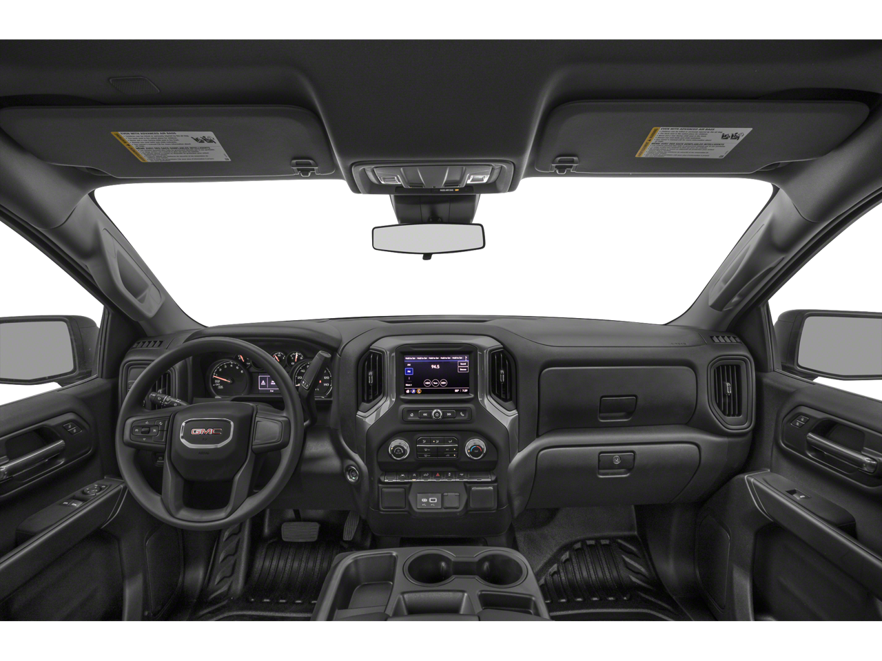 8-Speed Automatic, Black Cloth, 2 Charge/Data USB Ports, 2 Speakers, 2-Speaker Audio System Feature, 220 Amp Alternator, 3.42 Rear Axle Ratio, 4-Way Manual Driver Seat Adjuster, 4-Way Manual Passenger Seat Adjuster, 4-Wheel Disc Brakes, ABS brakes, Air Conditioning, AM/FM radio, Apple CarPlay/Android Auto, Auto High-beam Headlights, Automatic Emergency Braking, Brake assist, Buckle to Drive, Bumpers: chrome, Chrome Header w/Flat Black Grille Insert Bars, Compass, Convenience Package, Cruise Control, Deep-Tinted Glass, Delay-off headlights, Driver door bin, Dual front impact airbags, Dual front side impact airbags, Electric Rear-Window Defogger, Electronic Stability Control, EZ Lift Power Lock & Release Tailgate, Following Distance Indicator, Forward Collision Alert, Front 40/20/40 Split-Bench Seat, Front anti-roll bar, Front Center Armrest w/Storage, Front License Plate Kit, Front Pedestrian Braking, Front reading lights, Front wheel independent suspension, Fully automatic headlights, GMC Connected Access Capable, HD Rear Vision Camera, Heated door mirrors, Hitch Guidance, Illuminated entry, IntelliBeam Automatic High Beam On/Off, Lane Keep Assist w/Lane Departure Warning, LED Cargo Area Lighting, Low tire pressure warning, Occupant sensing airbag, OnStar & GMC Connected Services Capable, Outside temperature display, Overhead airbag, Overhead console, Panic alarm, Passenger door bin, Passenger vanity mirror, Power Door Locks, Power door mirrors, Power Front Windows w/Driver Express Up/Down, Power Front Windows w/Passenger Express Down, Power steering, Power windows, Preferred Equipment Group 1SA, Premium audio system: GMC Infotainment System, Pro Value Package, Push Button Start, Radio data system, Radio: GMC Infotainment Audio System, Rear reading lights, Rear step bumper, Remote Keyless Entry, Remote keyless entry, Solar Absorbing Tinted Glass, Speed-sensing steering, Standard Suspension Package, Tachometer, Tilt steering wheel, Traction control, Trailering Package, Trip computer, Variably intermittent wipers, Vinyl Seat Trim, Voltmeter, Wheels: 17 x 8 Silver Painted Steel, Wi-Fi Hotspot Capable, Wireless Apple CarPlay/Wireless Android Auto, 8-Speed Automatic, Black Cloth.